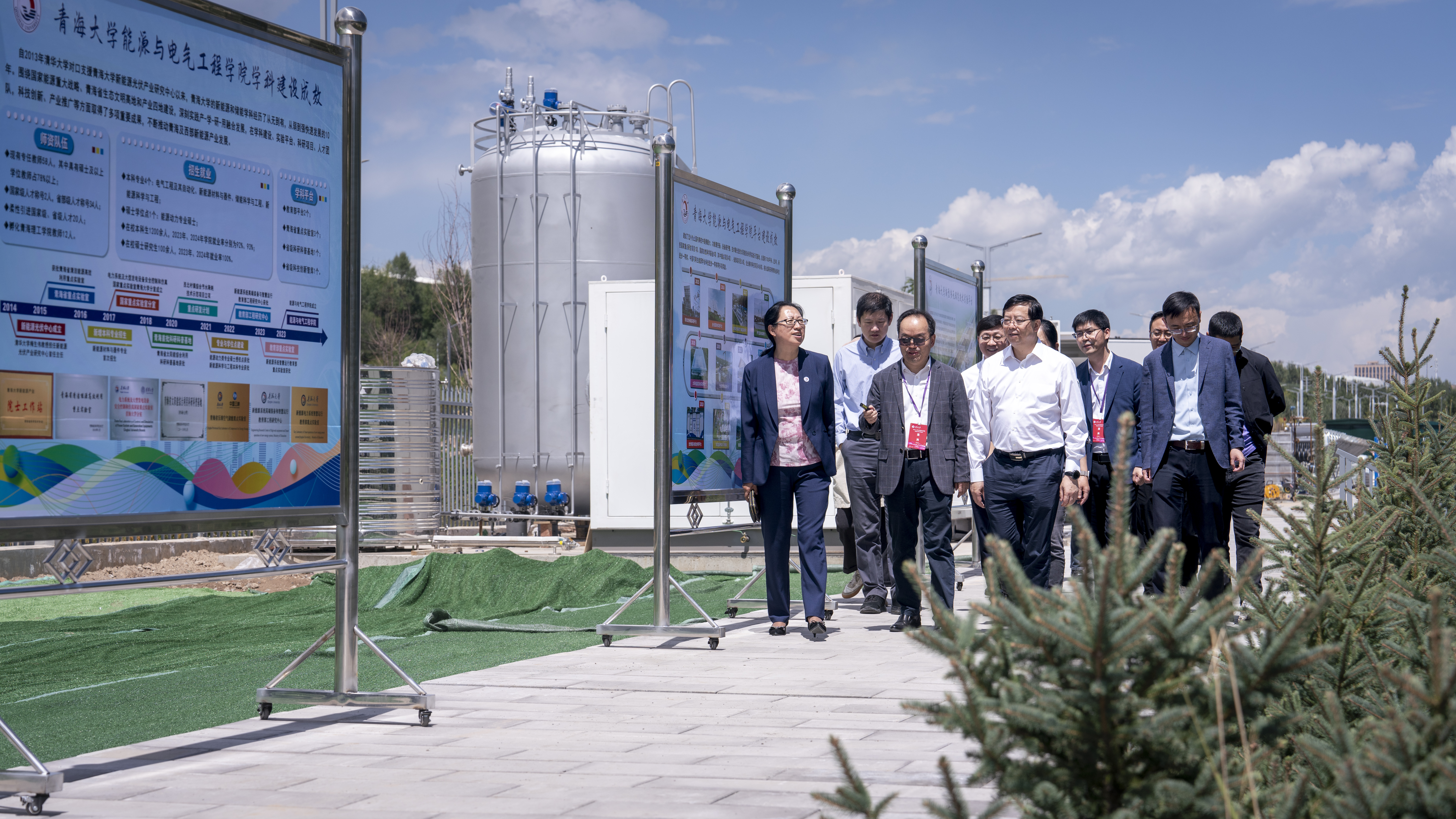 在青海期间,邱勇来到海南藏族自治州实地调研了多能互补发电项目建设实施情况。清华大学电机系教授、青海黄河上游水电开发有限责任公司(以下简称“黄河公司”)多能互补绿色储能全国重点实验室(筹)主任梅生伟,近年来协同相关单位在高比例新能源电力系统调控、水风光储多能互补等方面开展了一系列创新性工作,其中“水光互补”技术实现了水力发电和光伏发电快速补偿的功能,解决了光伏发电的弃光难题和安全并网问题填补了国际大规模水光互补关键技术的空白。邱勇在调研中表示,未来清华大学将持续支持青海重点和特色优势产业发展,推动科技创新和产业创新深度融合,努力以更多创新成果服务国家能源绿色低碳转型。
