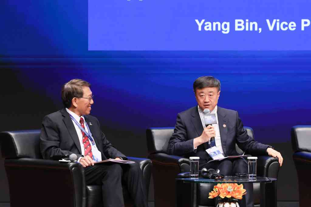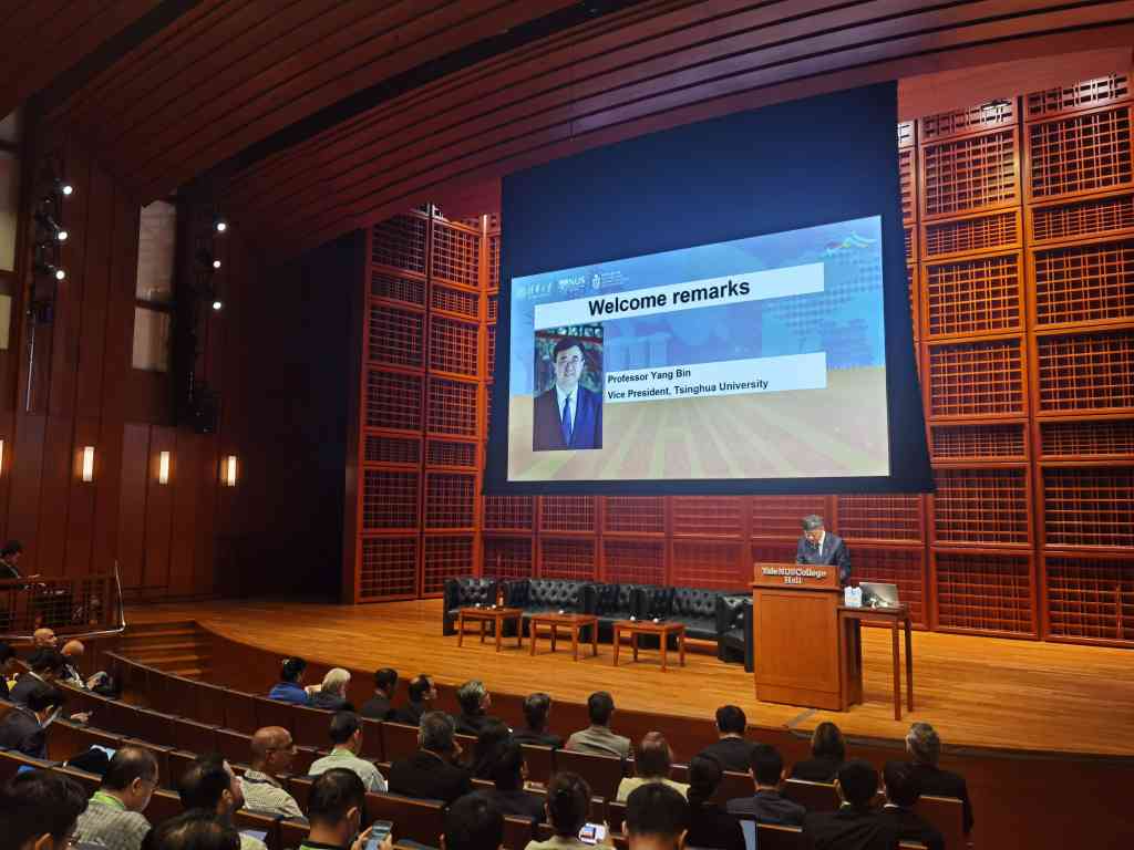 论坛期间,杨斌与香港科技大学首席副校长郭毅可进行交流。杨斌介绍了清华大学在学科建设、发展规划等方面的最新情况。郭毅可介绍了香港科技大学近期的重点工作。双方期待在学术科研、人才培养等方面进一步深化合作。