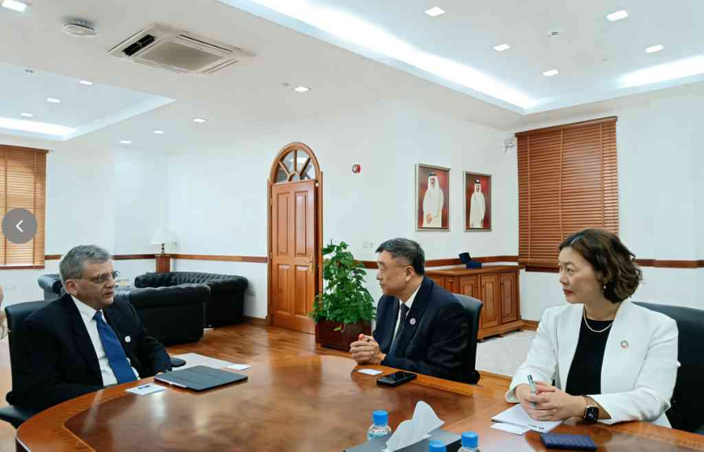 12月11日,杨斌一行访问卡塔尔投资局,与战略投资总监朱凯文(Kevin Zhu)等会谈,围绕深化学生互访等合作事宜交流探讨。