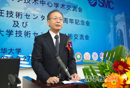 SMC株式会社社长丸山胜德宣读了SMC株式会社会长高田芳行的感谢信,信中高田会长高度赞扬了清华中心成立二十周年以来,在气动技术基础和应用研究上、在指导和培育人才等方面做出了很大的贡献,对清华大学以及中心的诸位老师的辛勤付出表示诚挚的感谢。