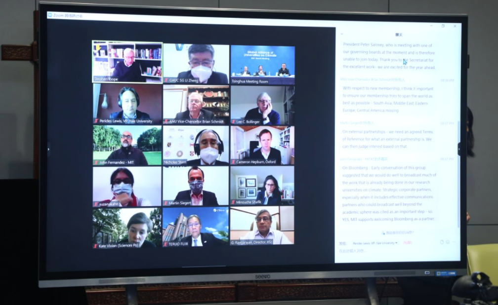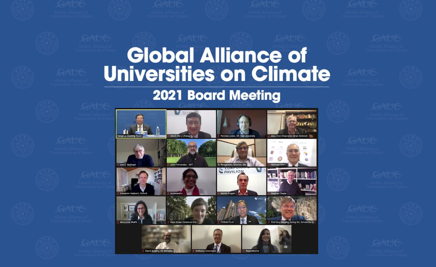 清华大学校长、世界大学气候变化联盟创始主席邱勇,联盟共同主席、伦敦政治经济学院校长米努切·沙菲克(Minouche Shafik)以及澳大利亚国立大学校长布莱恩·施密特(Brian P.Schmidt),哥伦比亚大学校长李·布林格(Lee C.Bollinger),剑桥大学校长杜思齐(Stephen Toope),印度科技学院校长戈温丹·兰加拉扬 (Govindan Rangarajan),东京大学校长藤井辉夫(Teruo Fujii)等联盟理事和盟校高级别代表出席会议。清华大学气候变化与可持续发展研究院常务副院长、世界大学气候变化联盟秘书长李政,伦敦政治经济学院教授、世界大学气候变化联盟学术委员会主席尼古拉·斯特恩(Nicolas Stern)勋爵,以及多位联盟成员高校代表于英国格拉斯哥COP26现场出席。会议由清华大学副校长、教务长杨斌,以及斯特恩勋爵主持。