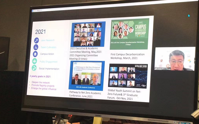 清华大学气候变化与可持续发展研究院学术委员会主任、世界大学气候变化联盟学术委员会共同主席何建坤教授,世界大学气候变化联盟副秘书长张健、孟波与执行秘书长王彬彬在清华分会场共同参会。