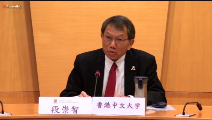 段崇智首先回顾了两校间的深厚渊源与合作历史,并就未来合作提出建议。段崇智介绍,“中大策略计划2021-2025”在科研与创新、教育、学生体验、环球拓展、人才发展、校友协作及社会责任等七个范畴规划了学校未来五年的发展方向。他强调,清华大学是香港中文大学在内地最重要的策略合作伙伴,期待两校在现有合作基础上继续为全球、国家和地区多做有影响力的事情。例如,可在国际平台如联合国可持续发展解决方案网络(Sustainable Development Solution Network,SDSN)框架下积极协作,为实现17个可持续发展目标(SDGs)共同努力,探索更多可能。他对清华大学的优秀人才培养计划表示支持,并欢迎清华大学选派学生到香港中文大学研究访学。