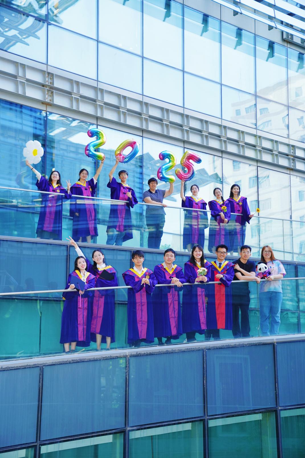 环13班毕业时,董欣与同学们在环境学院前合影留念
