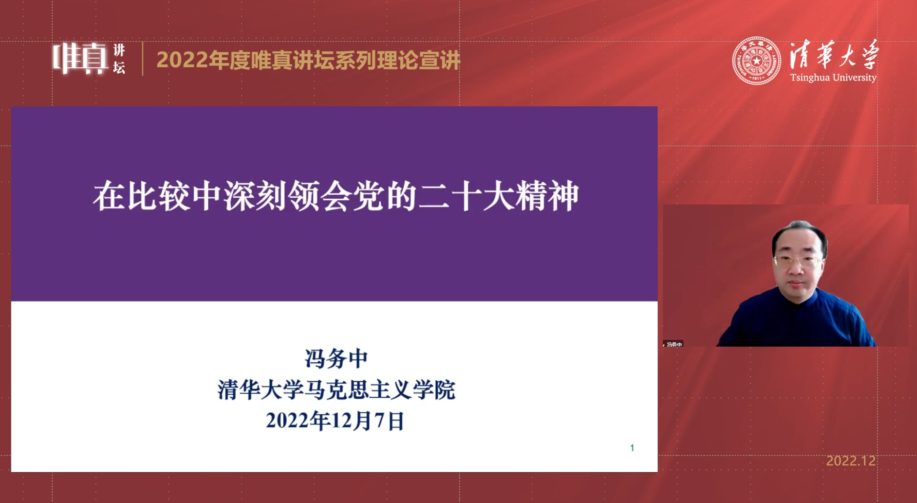 星空体育·星空网页版网站入口网12月9日电(通讯员 许子玮)为帮助全校干部师生更好地学习领会党的二十大精神,12月7日下午,2022年度清华大学唯真讲坛第十五讲在“荷塘雨课堂”线上平台举办,清华大学马克思主义学院副教授冯务中应邀作题为“在比较中深刻领会党的二十大精神”的报告。全校1840余名师生员工在线参加活动。