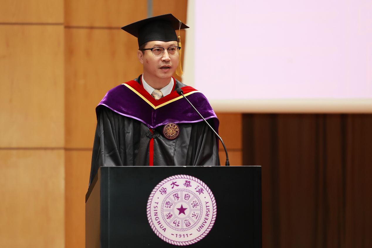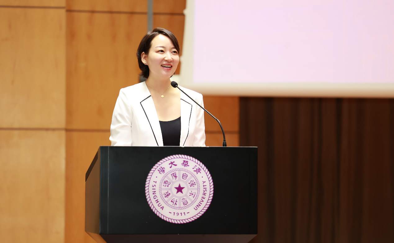 1999级水利系本科、2003级环境系硕士、2018级在读工程博士生,深圳市清华大学校友会副会长,深圳市城市规划设计研究院党委副书记、教授级高级工程师俞露作为校友代表发言。她以“有疆无界”一词分享了关于人生的内在与外延。俞露表示,做一个“有疆无界”的人,意味着对底线、对大爱、对责任的坚守,也意味着接纳不同、理解不同、尝试不同。