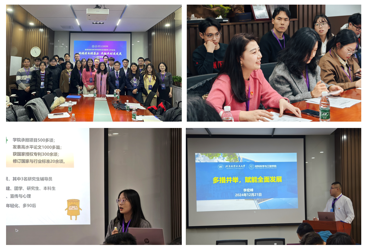随后开展了研团、研会和党团班主题分论坛。党团班分论坛从优秀集体建设经验、学院党建工作经验与纵向支部工作经验等方面开展专题讨论;研团分论坛以“共话学科特色,共谋青年发展”为主题,围绕材料学科研团工作与人才培养展开深入交流;研会分论坛围绕搭建学术交流平台、全面服务同学成长成才等方面进行交流。