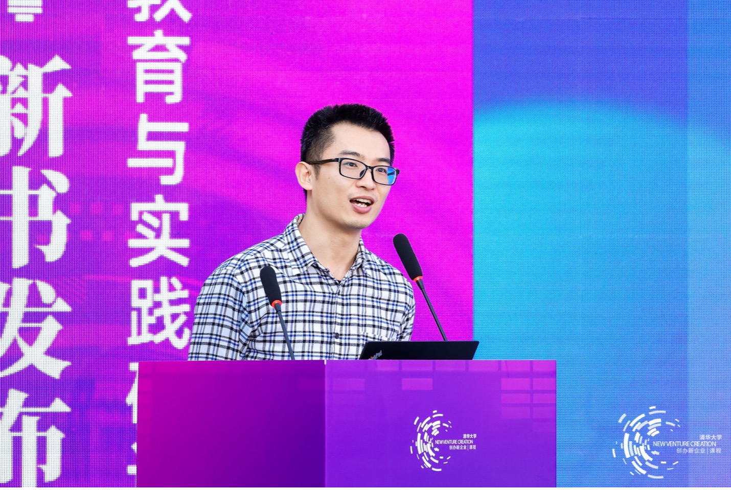 清华大学经管学院创新创业与战略系副主任、副教授张帏介绍了《创业行》一书的编写过程,并以追觅科技创始人俞浩、蓝晶微生物联合创始人李腾两位课程校友为案例,阐述了“创办新企业”课程如何推动人才培养模式的改变。