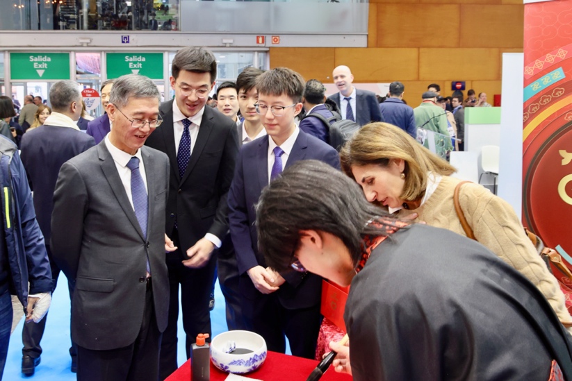 1月22日,支队参加第45届西班牙马德里国际旅游展专业日展览及中国展区开幕式。应西班牙中国学生学者联合会邀请,支队以“风华共庆·中西艺韵迎春汇”为主题开展文化交流活动,通过现场开展的剪窗花、贴福字、制漆扇、春节风俗讲解等文化体验环节,引导来自世界各国的参展者感受中国春节的团圆与欢庆,展现中国春节的喜庆氛围与文化内涵。中国驻西班牙大使姚敬来到展位前与同学们亲切交流。