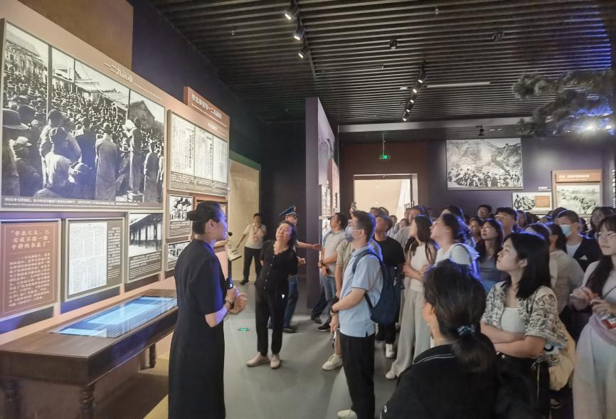 教职工们在讲解员的带领下,沿着历史发展的脉络依次参观八个展区,透过一件件饱经沧桑的抗战文物、一幅幅震撼人心的历史照片、一段段令人动容的影像资料、一个个气壮山河的英雄事迹,重温抗战岁月的艰辛与革命先烈为了民族解放舍生取义、不屈不挠的伟大精神,深刻感受中国共产党在全民族抗战中的中流砥柱作用和中国人民为世界反法西斯战争作出的历史贡献。