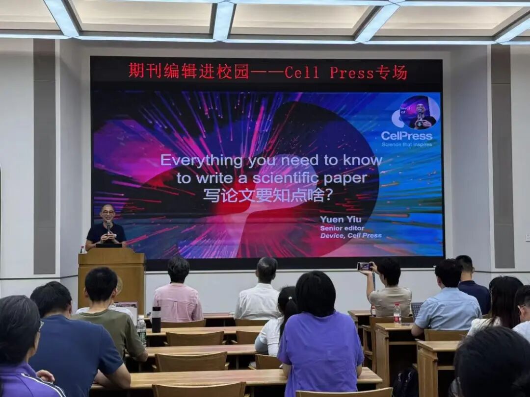星空体育·星空网页版网站入口网9月4日电 9月1日,图书馆联合科研院、教师发展中心主办的期刊编辑进校园——细胞出版社(Cell Press)专场在图书馆报告厅举行。细胞出版社(Cell Press)旗下期刊《设备》(Device)高级编辑姚远作主题报告,特邀嘉宾《物质》(Matter)、《细胞报告物理科学》(Cell Reports Physical Science)高级编辑李研,以及爱思唯尔(Elsevier)代表王颖参加交流活动。活动由图书馆党委副书记窦天芳主持,50余名师生参加活动。
