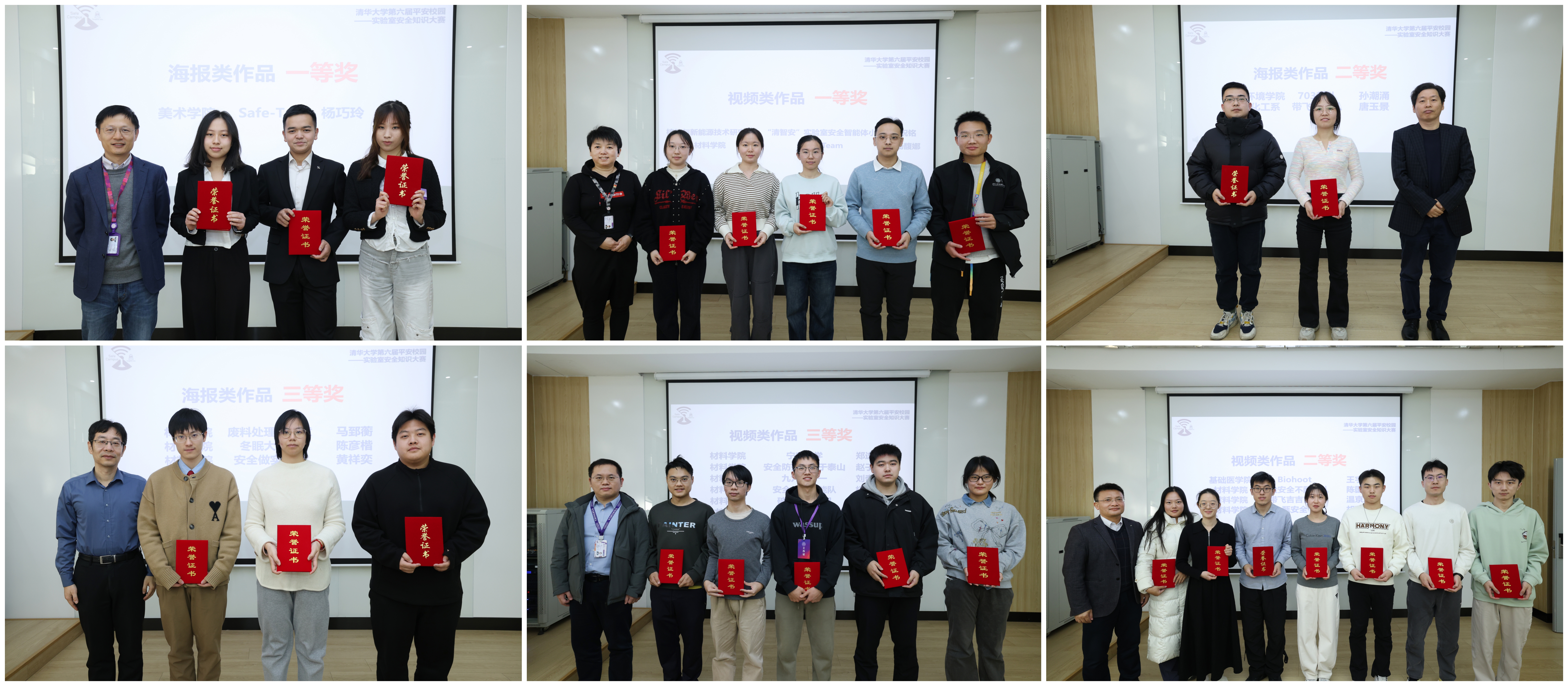 本次大赛围绕“生命至上筑未来”主题,设立“微视频”和“海报”两个赛道,以多媒体形式传递规范操作、安全实验、平安科研的理念,吸引了6个院系80余名同学参赛。经过初赛选拔和决赛答辩,最终,微视频赛道角逐出一等奖2组、二等奖4组、三等奖6组、优秀奖4组,海报赛道角逐出一等奖1组、二等奖2组、三等奖3组。