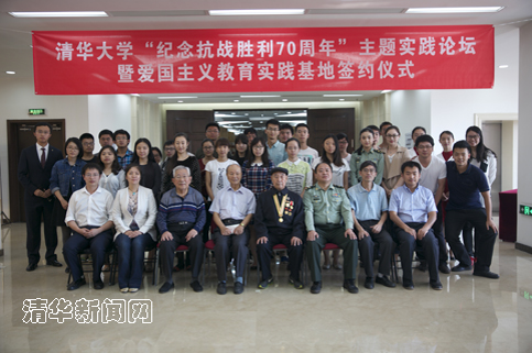 清华大学暑期组织了一批学生社会实践支队,紧密围绕纪念“中国人民抗日战争暨世界反法西斯战争胜利70周年”主题开展实践活动。主题论坛上,5支代表支队分享了他们的感受。由清华大学和台湾各高校十余名志愿者组成的“两岸同心”大学生志愿者实践支队,前往沈阳参观“九·一八”历史博物馆,并与抗战老兵座谈。赴云南保山市腾冲县访谈老兵支队的同学们近距离接触当年使日寇闻风丧胆的远征军老兵,回忆他们当年与敌人拼刺刀,在缅甸丛林挥洒热血的光辉岁月。“记老兵故事,系两岸深情”在台眷村大陆老兵探访支队跨过海峡,访谈在台抗战老兵。两支重走西南联大之路的支队沿着先辈的足迹,前往长沙、昆明,拜先贤、访故地,亲身感受抗战时期师生们“刚毅坚卓”的精神内核,用心体会西南联大传承下来的流风余韵。
