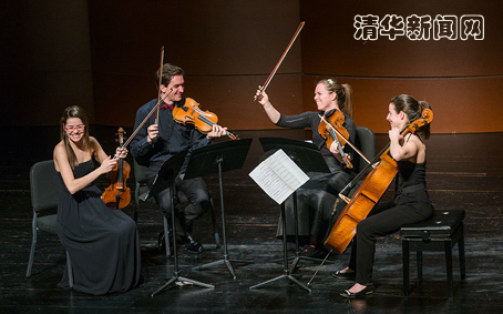 演奏中,这4位年轻的音乐家,凭借其娴熟的演奏技艺、充满朝气同时稳健的表现力以及演奏家之间独特的对话与默契,给清华的观众带来了一场听觉的饕餮盛宴。悠扬的行板、活泼的快板、兴奋的急板……灵动的提琴声时而俏皮欢快,时而低沉苦涩,带领着观众领略古典弦乐的别致魅力。同时,四位音乐家在琴弦上跳跃的手指,随乐曲摆动的身姿,投入的表情以及队友之间挑眉、微笑与眨眼的互动,都给演出增添了活泼与张力。