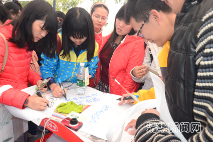 图为同学们留下自己的环保宣言。陆欣然 摄