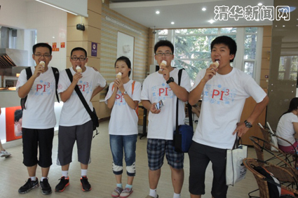图为精仪系新生在抵达目的地后品尝校园美食。