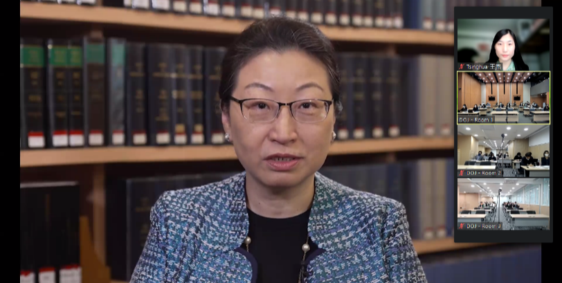 香港特区政府律政司司长郑若骅在致辞中对清华大学以线上研讨讲座模式为律政司举办第三期课程表示感谢。郑若骅提到,国家主席习近平强调要以全面依法治国新理念新思想新战略为指导,坚持依法治国、依法执政、依法行政共同推进,法治国家、法治政府、法治社会一体化建设。律政司作为香港特区政府处理法律事务、促进法治和司法公义的部门,希望能协助提升香港律师对国家司法体制和最新情况的理解,加强培育具备国际视野、通晓国际规则、国家观念深厚的法律人才,为建设法治中国,依法维护国家主权、安全、发展利益作出贡献。