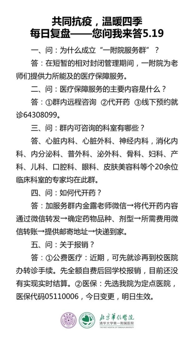 本轮疫情发生以来,清华大学严格落实北京市相关要求,并于近期全面强化校园封闭管理,筑牢疫情防控屏障。面对校内外师生和离退休教职工的就医需求,学校和校医院推出一系列举措,积极做好医疗服务保障。
