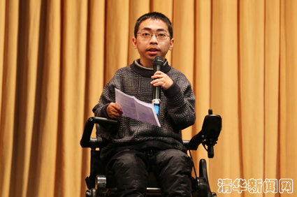 “自强计划”计算机系2012级新生、身残志坚的“轮椅少年”矣晓沅作为受助学生代表发言,讲述自己受助后的学习生活并表达对捐赠人的感激之情。