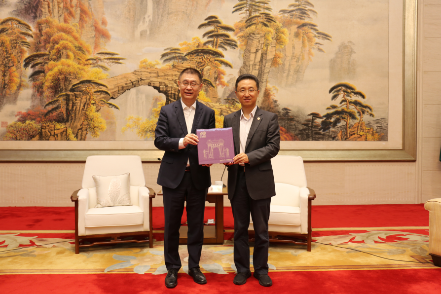 胡钰向姚坚赠送清华大学110周年校庆邮册