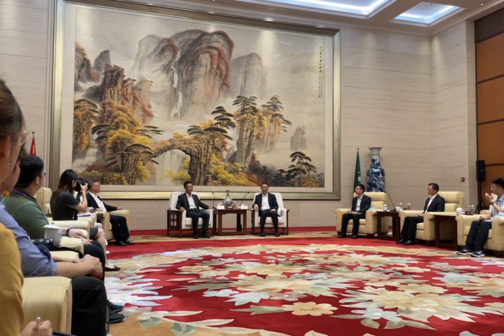 姚坚对支队一行的到来表示欢迎,对课程的宗旨和形式表示赞赏。他强调,目前澳门正持续加强“一中心、一平台、一基地”的建设,即建设世界旅游休闲中心,中国与葡语国家商贸合作服务平台,促进经济适度多元发展,打造以中华文化为主流、多元文化共存的交流合作基地,文化产业发展对于澳门城市形象塑造与经济结构调整都具有重要意义。姚坚表示,澳门与祖国大陆始终保持着紧密的联系,粤港澳大湾区的建设,既是新时代国家发展大局中的重要战略,也是推动“一国两制”事业发展的新实践。在这种时代大势下,欢迎清华青年学子积极投入粤港澳大湾区建设,做文化传播的使者。澳门文化的多样性、包容性都很强,值得青年学子去播种,去耕耘,对于培养青年全球胜任力也很有帮助。