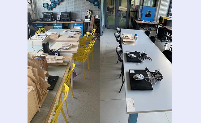 5月15日,训练中心在和李兆基大楼物业沟通后,将大楼一层、二层的实验室隔为独立空间,在工作日的7:30-18:30开放,仅允许本科生和助教同学进入,避免师生存在时空交集。但此时,部分3D打印设备还位于大楼四楼,于是,李睿便将四台每台重达30公斤的打印机搬到了一楼。同时,由于3D打印任务时长较长,李睿需要每晚在所有同学的打印任务都结束后,再进入实验室将打印零件取出。