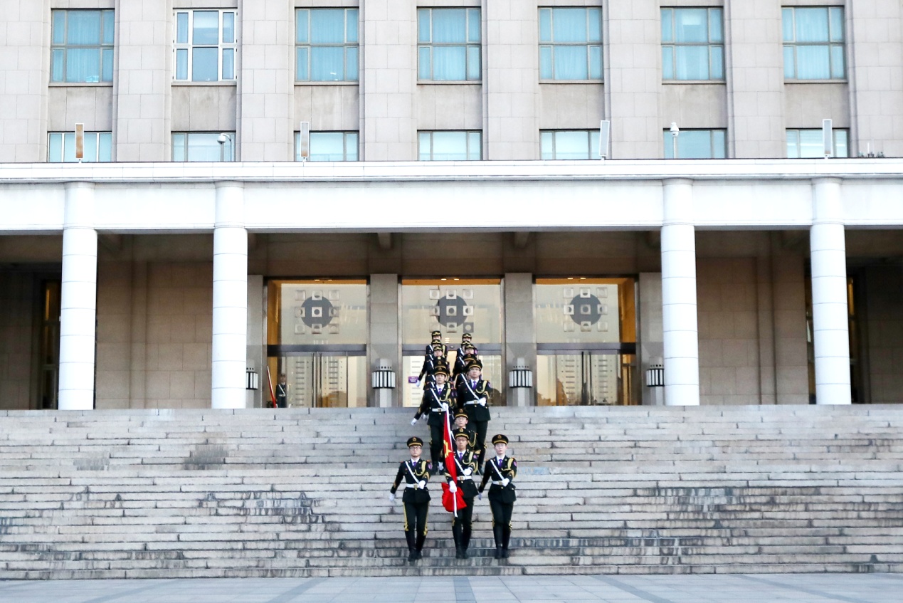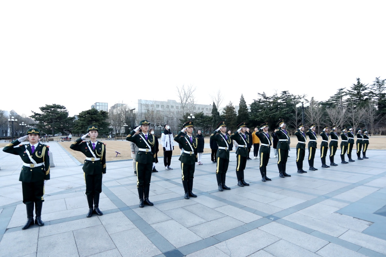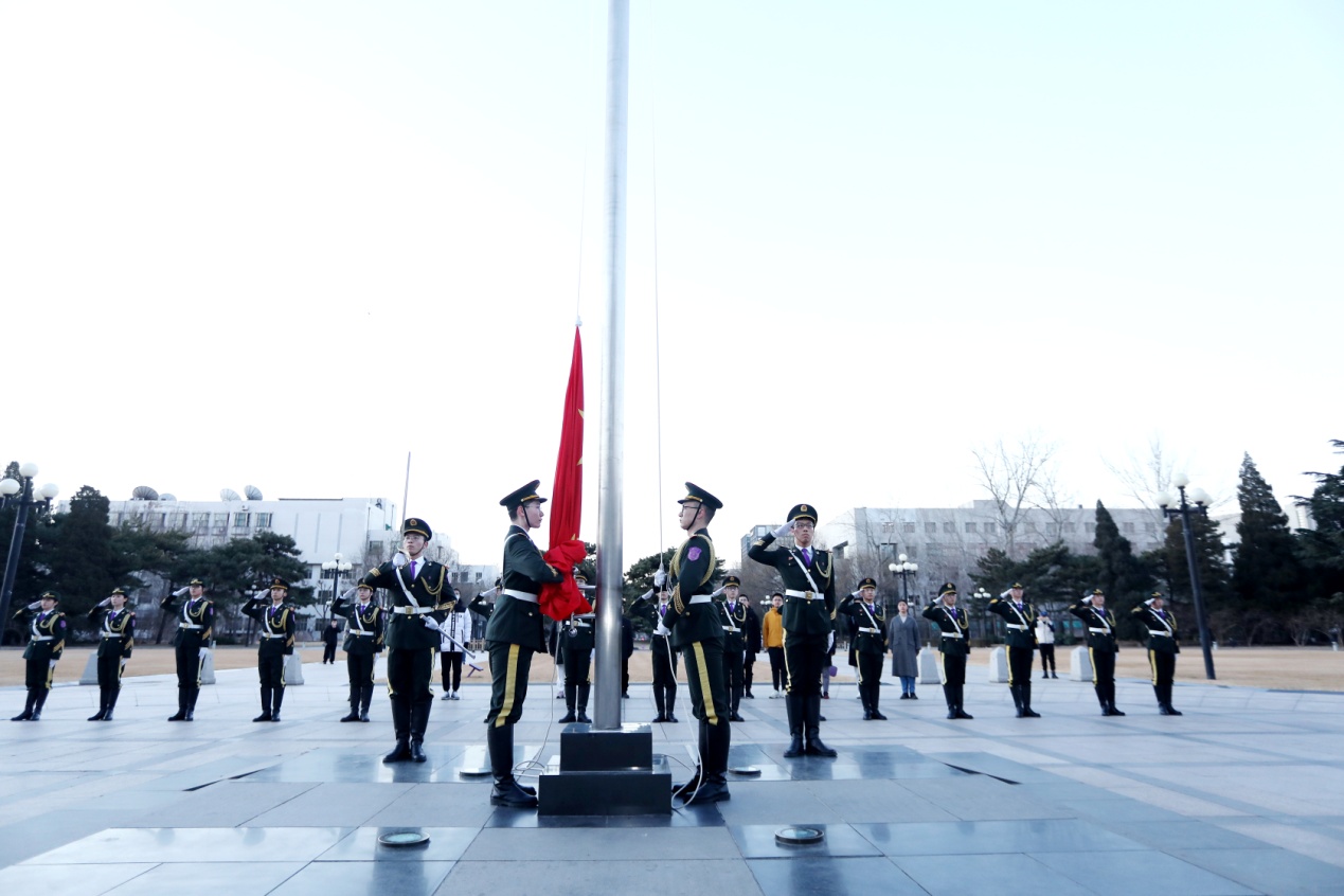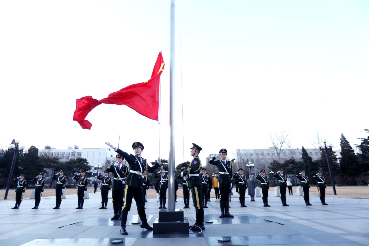 2023年2月20日早七点,清华大学主楼前广场正步踏响,国旗飘扬,伴着松绿与鲜红,迎接新学期第一天的晨光!