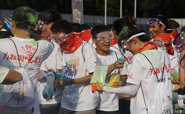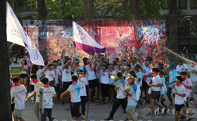 下午四时,以“‘清’春奔跑,为祖国喝‘彩’”为主题的2019年清华大学阳光彩跑活动正式开跑,3200余名师生参与其中。本次彩跑将爱国主题融入其中,在沿途站点设置了“新中国成立”“第一颗原子弹爆炸”“东方红一号发射成功”“港澳回归”“北京奥运会”“FAST天眼工程”和“新中国成立七十周年”七大主题展区,让同学们在欢乐奔跑中回顾新中国成立以来取得的伟大成就,为祖国庆生。