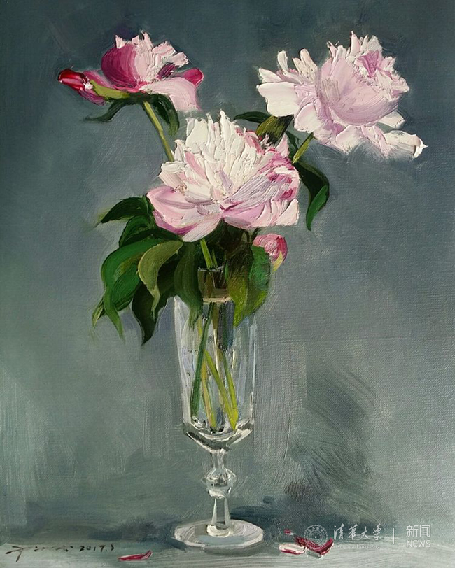 春分日,清华园内春意初显,草色遥看近却无。想来那万物复苏、繁花似锦的盛春时节也近了,就让我们先在程向君老师的花卉系列油画作品中感受盎然的春意吧!