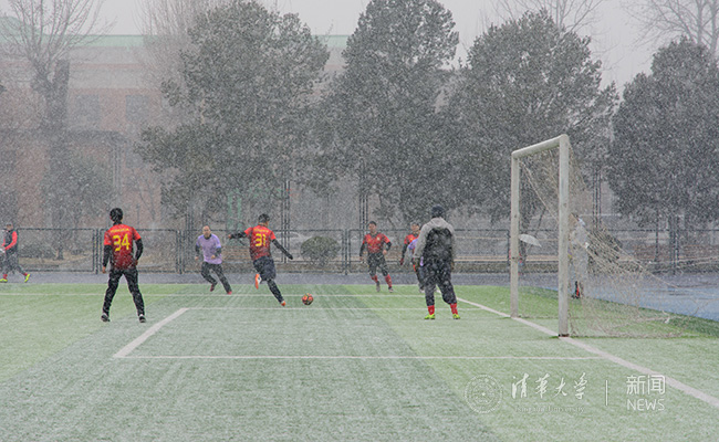 春雪中的球赛。