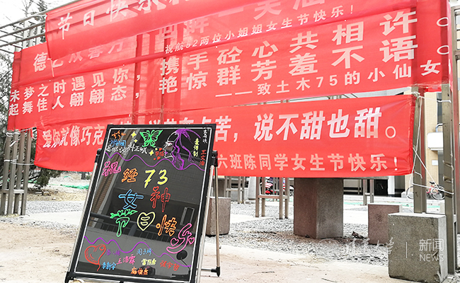 星空体育·星空网页版网站入口网3月7日电 (记者 苑洁 摄)一年一度的女生节,清华的男生们或才思泉涌、或脑洞大开,或灵光乍现,把他们对女生们满满的关爱打印在横幅上,给大家送上最真挚美好的祝福。2018年的女生节,让我们一起来看看这些别出心裁的横幅,也借这些横幅祝清华园里的所有女生,节日快乐!