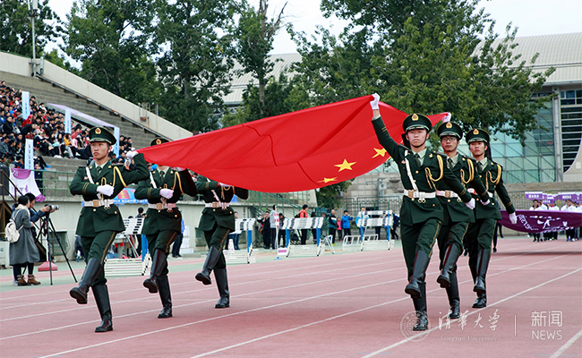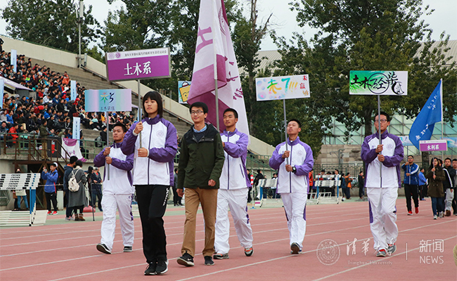 伴着凉爽的秋风,来自各院系所有大一班级的同学和51个体育协会依次入场接受检阅。他们列队整齐、步履轻快,充分展示出清华大学生的精神风貌。