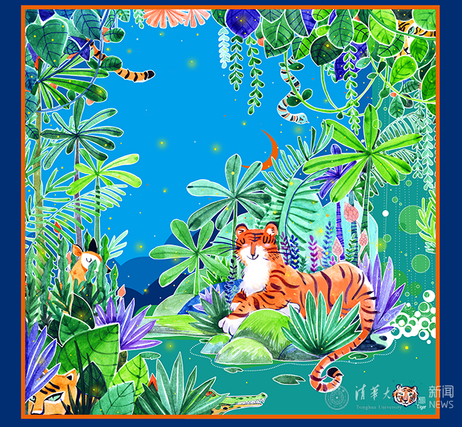 插画丝巾设计《虎乐园》作者:王瑾