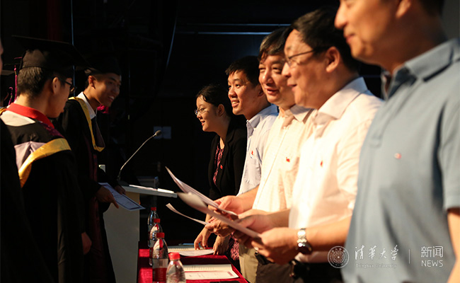 今天,学校27000多名党员,在胸前共同佩戴上党旗徽章。他们中,有奋斗在教学科研一线的教师,有默默奉献的后勤工作者,有莘莘学子,也有耄耋老人。这一天,我们共同纪念党的生日,让鲜艳的党旗徽章飘扬在清华园。