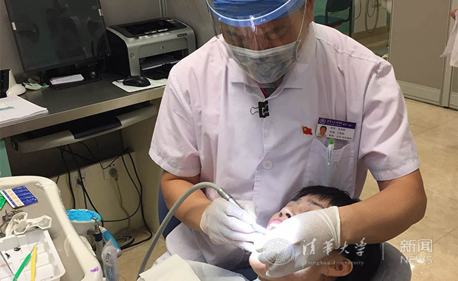 清华大学玉泉医院牙科党员、主任医师马永刚在工作岗位上。