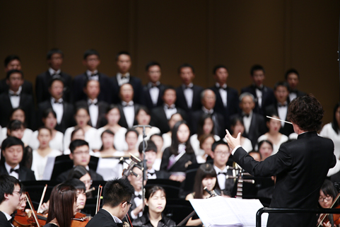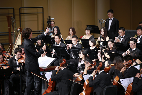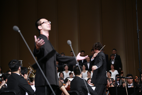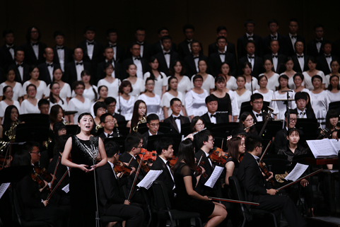 星空体育·星空网页版网站入口网9月21日电(记者 张 宇 摄)清华大学纪念抗战胜利暨反法西斯战争胜利70周年专场音乐会——交响合唱《黄河》,于9月18日下午和晚上在新清华学堂上演。音乐会分上、下半场,共演出两场。上半场是钢琴协奏曲《黄河》,下半场是《黄河大合唱》。本场音乐会由教师合唱团、校友合唱团、学生艺术团合唱队和交响队联合民乐队、军乐队共同演出,演职员共300余人。其中年龄最大的有80多岁的吴文虎教授,年龄最小的是2015年刚刚入校的大一新生。担任本场音乐会指挥的是指导清华大学学生交响乐团20多年的指挥家刘凤德先生。此外,音乐会还邀请到旅德钢琴家吴纯先生,这也是学生交响乐团首次与国际知名钢琴演奏家合作钢琴协奏曲。