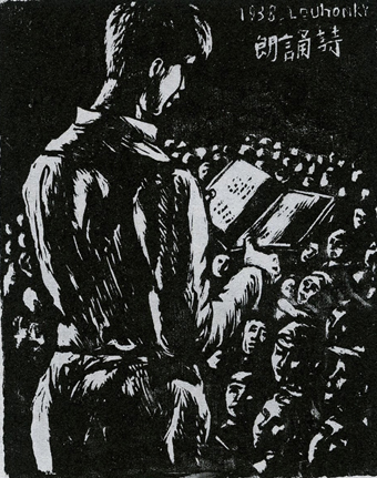 江丰《延安各界纪念抗日阵亡将士大会场》