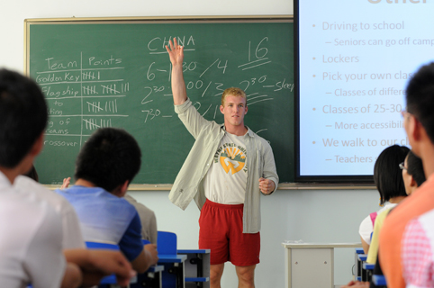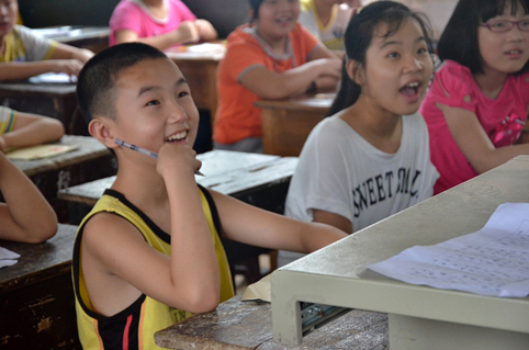 清华大学中美大学生暑期教育扶贫支教活动场景。