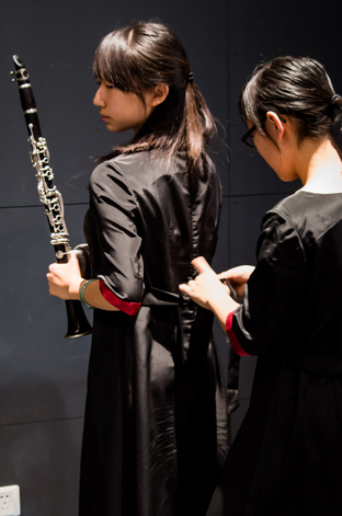 军乐队的同学在做上场前的准备工作。周元昊 摄