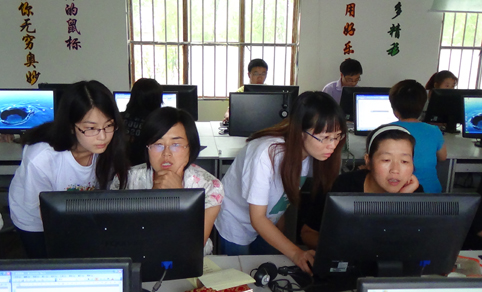 图为赴甘肃泾川、甘肃崇信、河北康保、广西河池TECC暑期支教TSI项目联合支队为当地群众进行电脑教学。