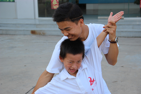 图为赴安徽阜阳关爱艾滋致孤儿童实践支队的队员与孩子。