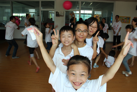 图为赴安徽阜阳关爱艾滋致孤儿童实践支队的队员与孩子们。
