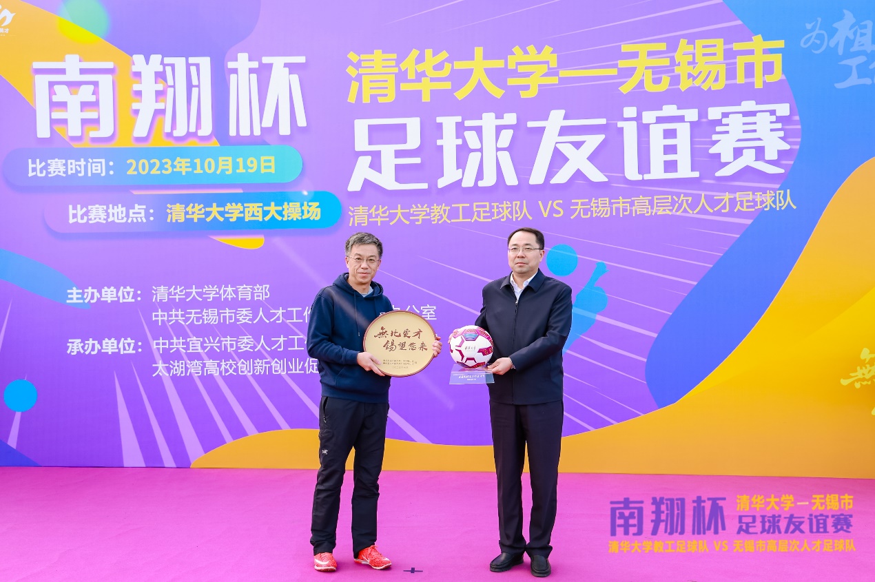 赛后,史宗恺、高飞分别为清华大学工会教职工足球队、无锡市高层次人才足球队颁发金、银奖杯。