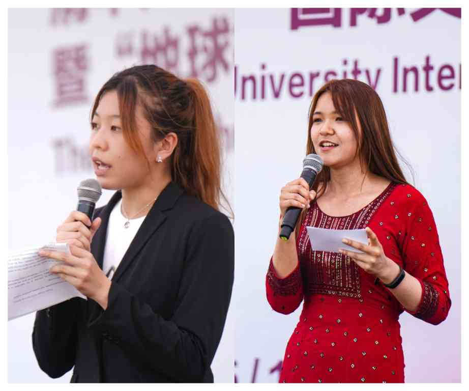 清华大学学生对外交流协会(ASIC)会长陈欣霓、清华大学学生国际文化交流协会(AICE)会长许哲怡作为学生代表发言,分享自己在跨文化交流中的经历和感想,希望同学们能够通过本届国际文化节广交朋友,在多彩的文化视角中获得成长。