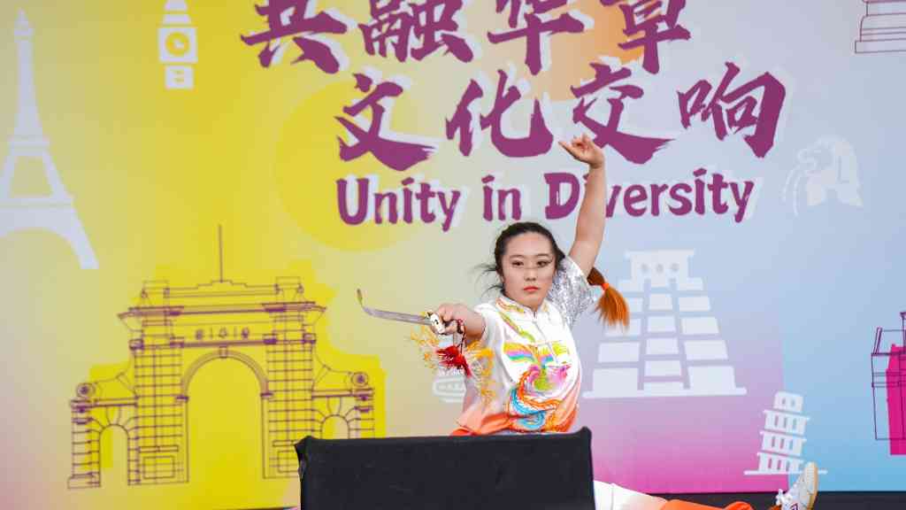 舞台表演集中在下午,14个各具特色的节目陆续登场,现场掌声不断,气氛热烈。马来西亚的齐舞节奏明快,活力四射;蒙古的歌舞将古典与现代结合,带来一场视听盛宴;法国二人组合的演唱点燃全场,令人耳目一新;美国同学展示的中国剑术让人感受到文化交流的魅力。