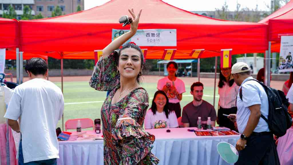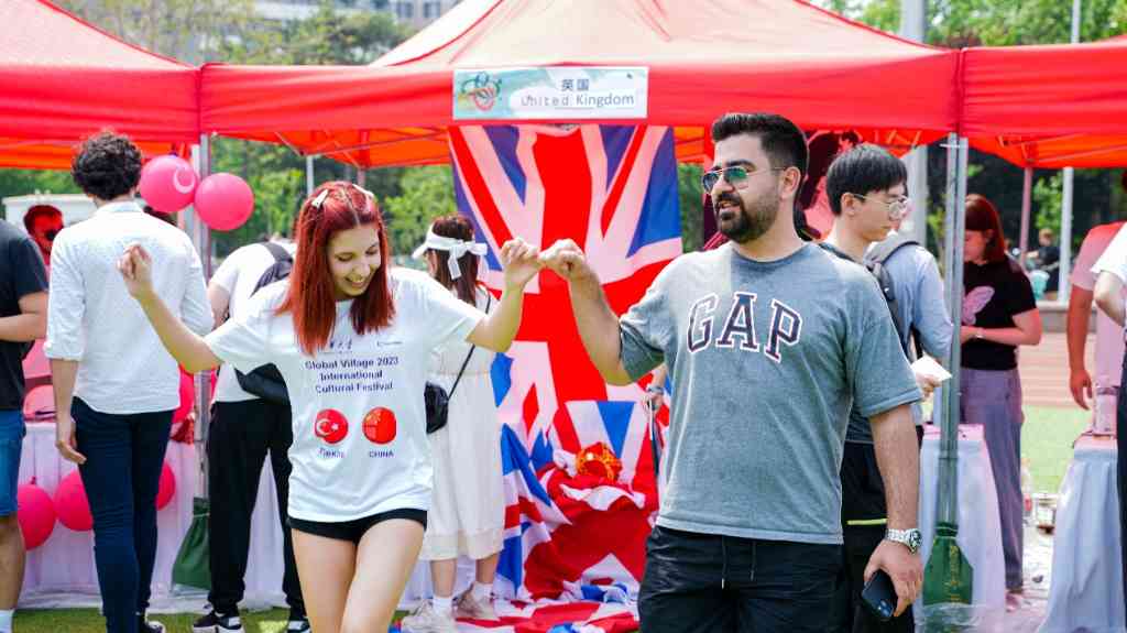 来自近50个国家的同学们设立展棚,通过美食特产、手工艺品、风情歌舞、趣味游戏等形式展示各自独特的文化。越南展棚前,同学们一边品尝着软糯的绿豆糕和越南咖啡,一边围观着正饶有兴致进行分豆游戏的玩家,不时传来阵阵欢声笑语;墨西哥展棚中播放着充满地域风情的音乐,香气扑鼻的塔克卷饼吸引了许多人排队等候;加纳展棚前热情的舞蹈引来喝彩不断,旁边的棚内,同学正为大家分装乔洛夫饭;乌兹别克斯坦展棚中别具风情的民族服饰让许多人忍不住上前一试……值得一提的是,今年中国部分由十个展棚构成了中国街,荟萃了各式各样的中华传统文化和非遗技艺展示,来自各国的同学们体验了赏年画、做兔爷、弹古琴和书法艺术,感受着古老深厚的中华文明的魅力。