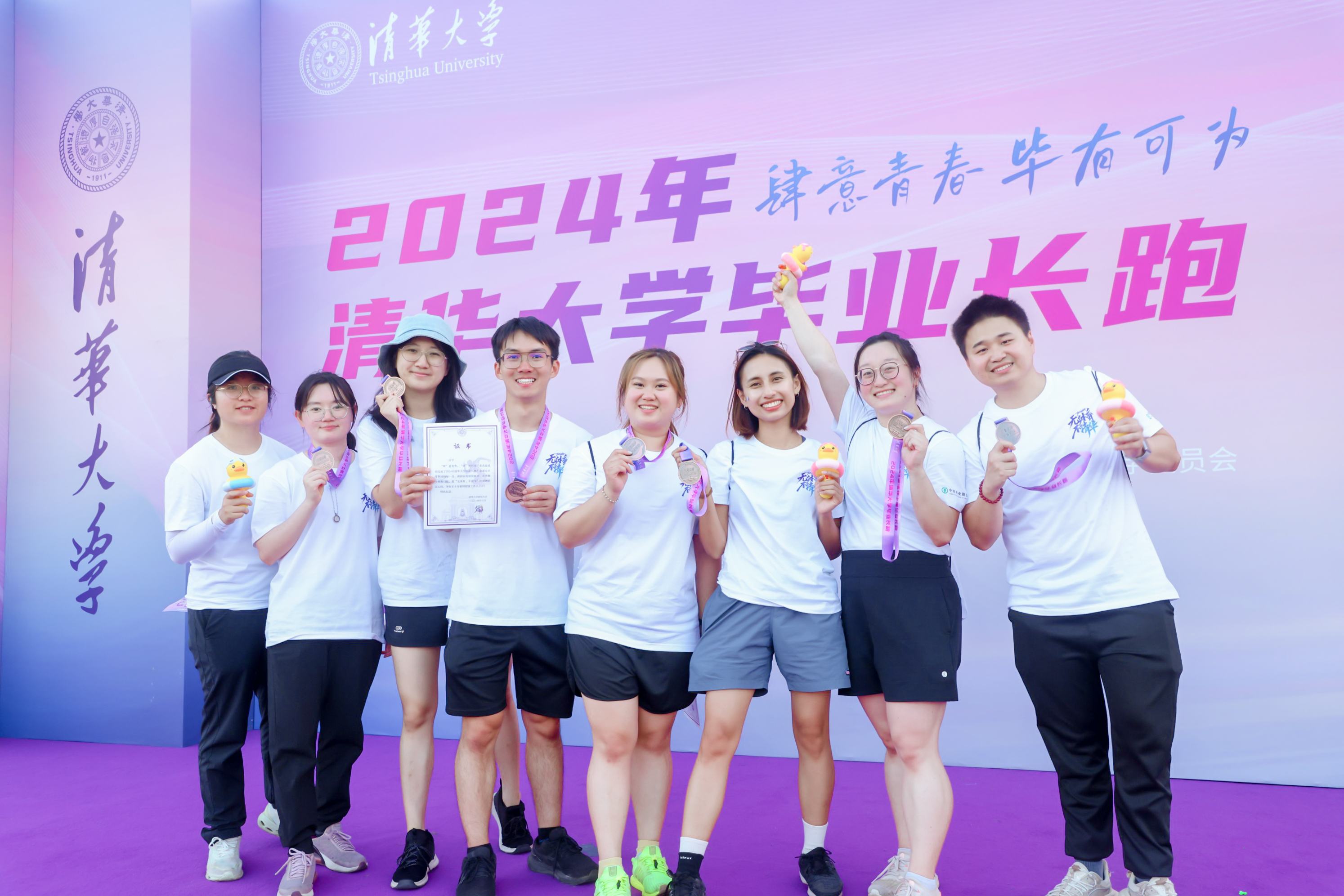 本次毕业长跑以西大操场为起终点,沿途设置了六大站点,毕业生前往不同站点签名留念、拍照打卡。完成长跑并在各个站点成功打卡后,每一位毕业生都获得了精美的毕业长跑纪念证书与奖牌。