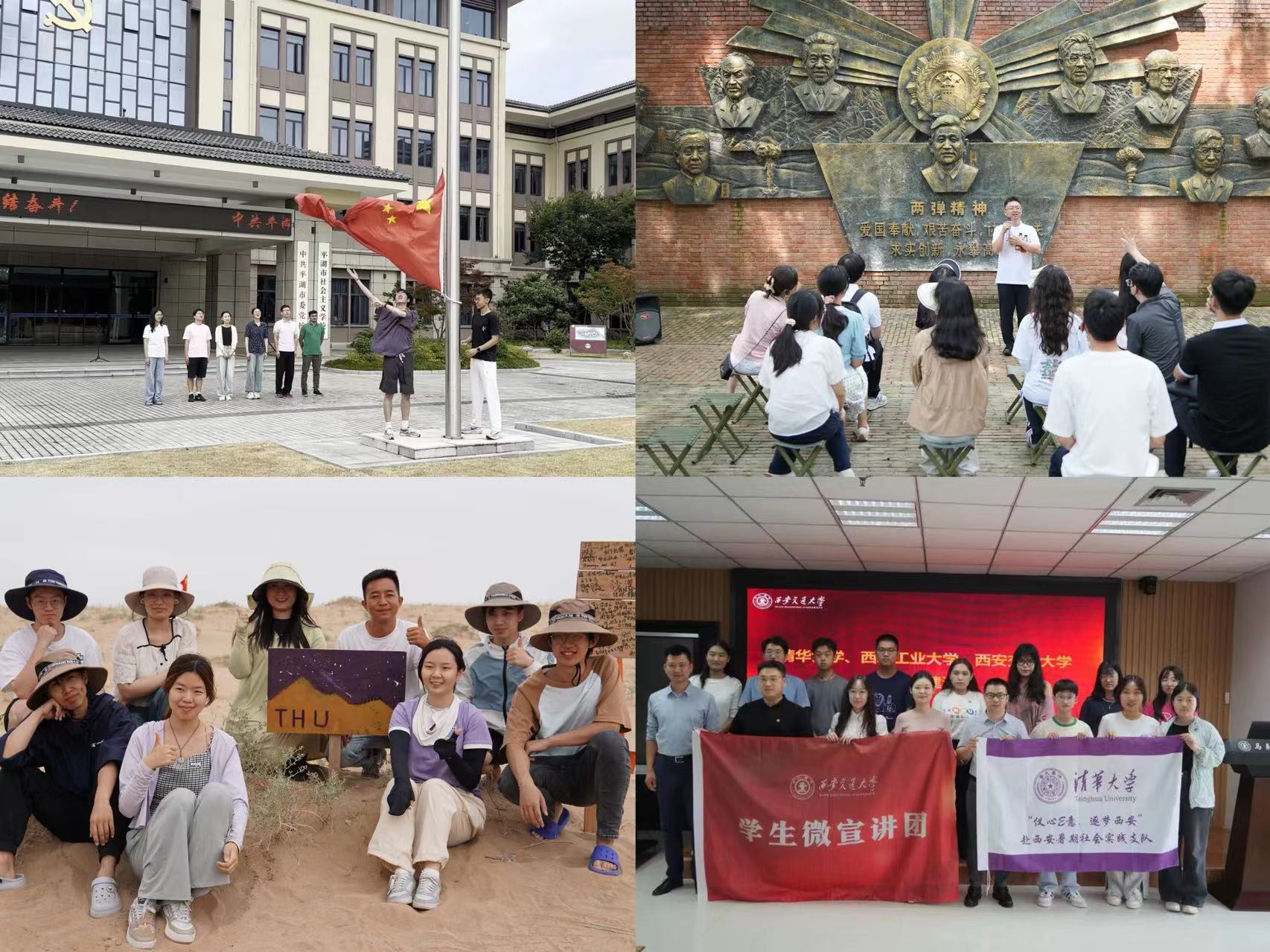 在浙江平湖,同学们在平湖党校“同升一面红旗”,在激昂的国歌声中再一次坚定清华人爱国奉献、追求卓越的理想信念。在“两弹元勋”邓稼先同志诞辰100周年之际,“初心服务团”赴四川成都-绵阳支队“把思政课搬进两弹城”,在邓稼先旧居“同寻一面红旗”,学习先辈们爱国敬业、无私奉献的崇高品质。