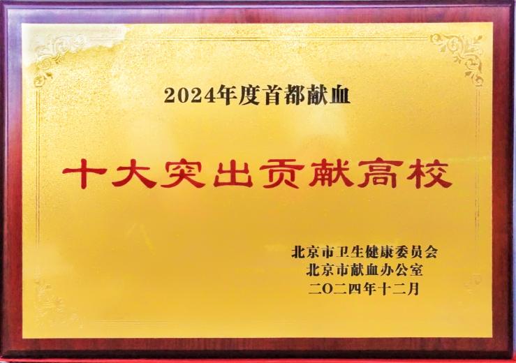 清华大学获评“2024年度首都献血十大突出贡献高校”
