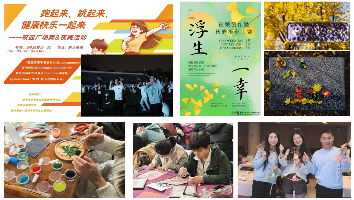 深化心育和五育融合,校系协同,提升覆盖。心理中心携手校学生会与学生心理协会举行了三期校园广场舞活动,共吸引了1000多名师生参与。通过院系心理支持计划,心理中心为30个院系提供支持,并合作开展数十场特色活动,如与地学系合作开展“浮生一幸”主题视频创作征集大赛,与电子系合作开展“心与手的交响”竹编体验劳育活动,与材料学院、法学院合作开展“心与手的交响”手绘小夜灯美育活动等。